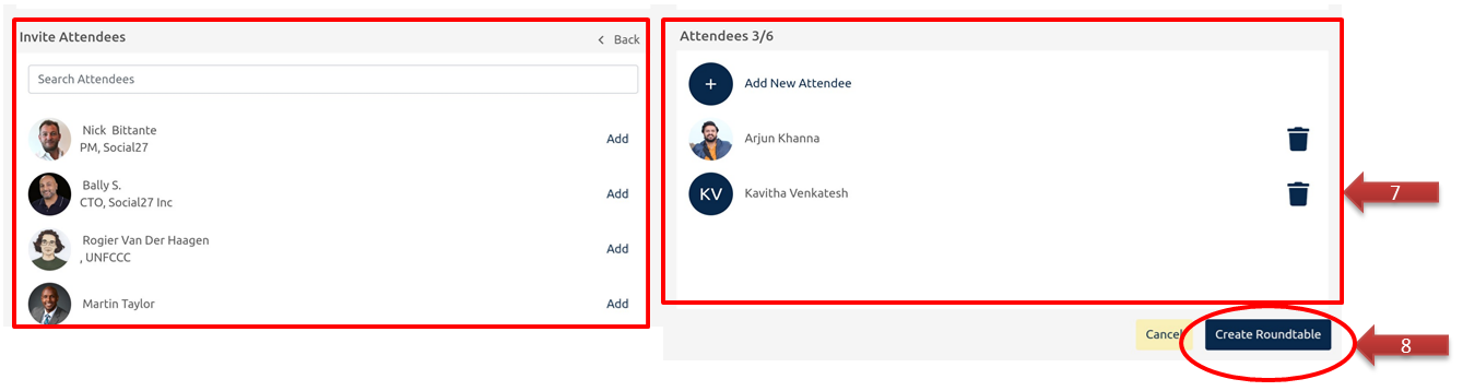 Number of Invited Attendees: Use this space to determine whether it is a Roundtable or Boardroom and the number of attendees to invite.