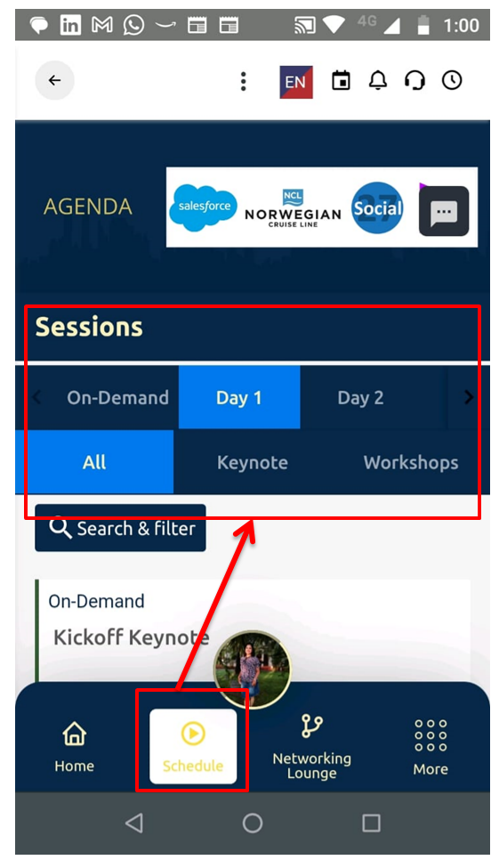 The mobile app offers attendees the flexibility to engage in real-time sessions, view on-demand content, and participate in interactive discussions. Users can share reactions, ask questions, and join chat conversations during sessions, fostering a dynamic and engaging event environment.